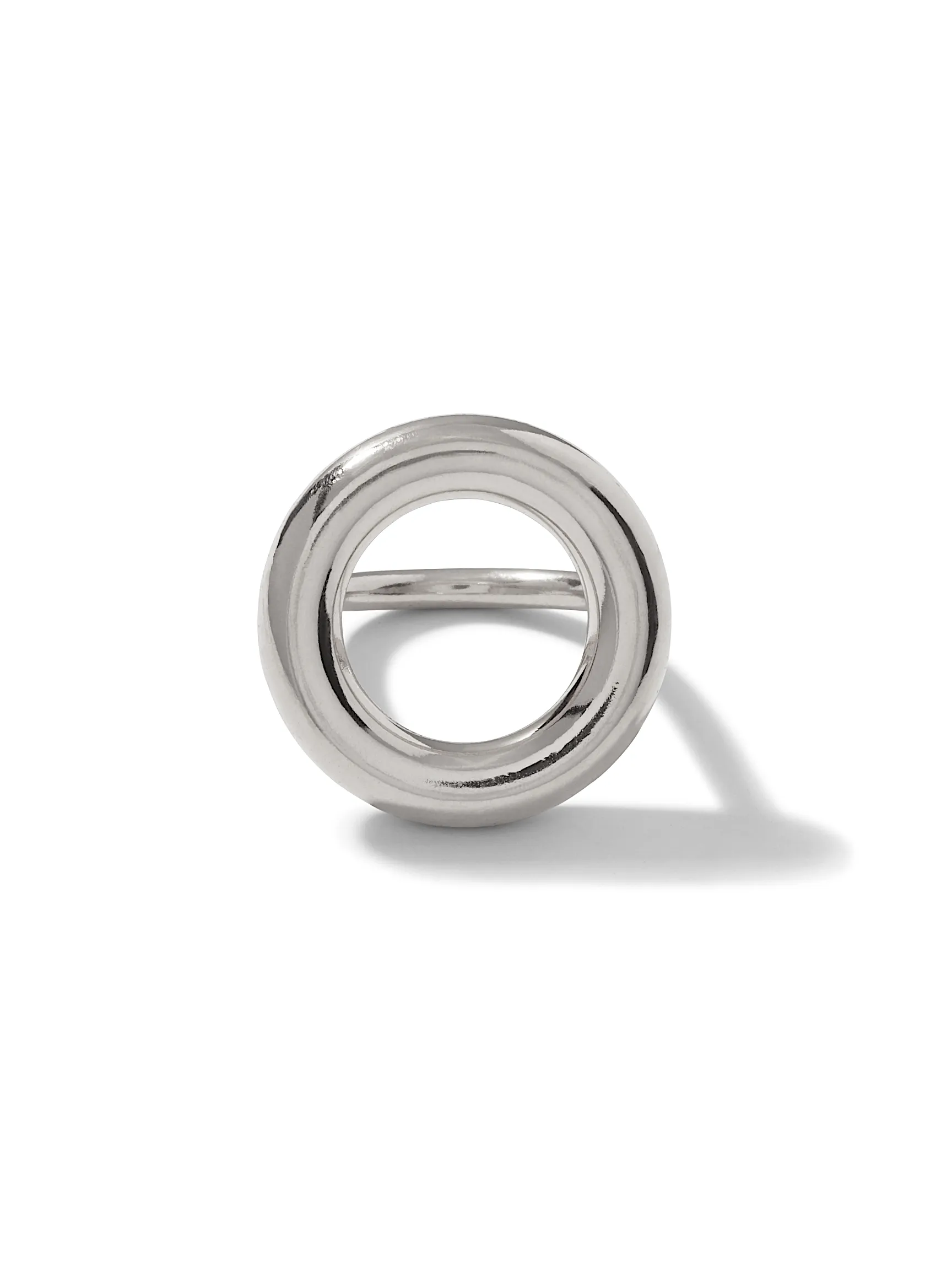 Choose either an 18k Gold Plated or Silver Plated accent ring featuring a doughnut atop a simple yet solid band.