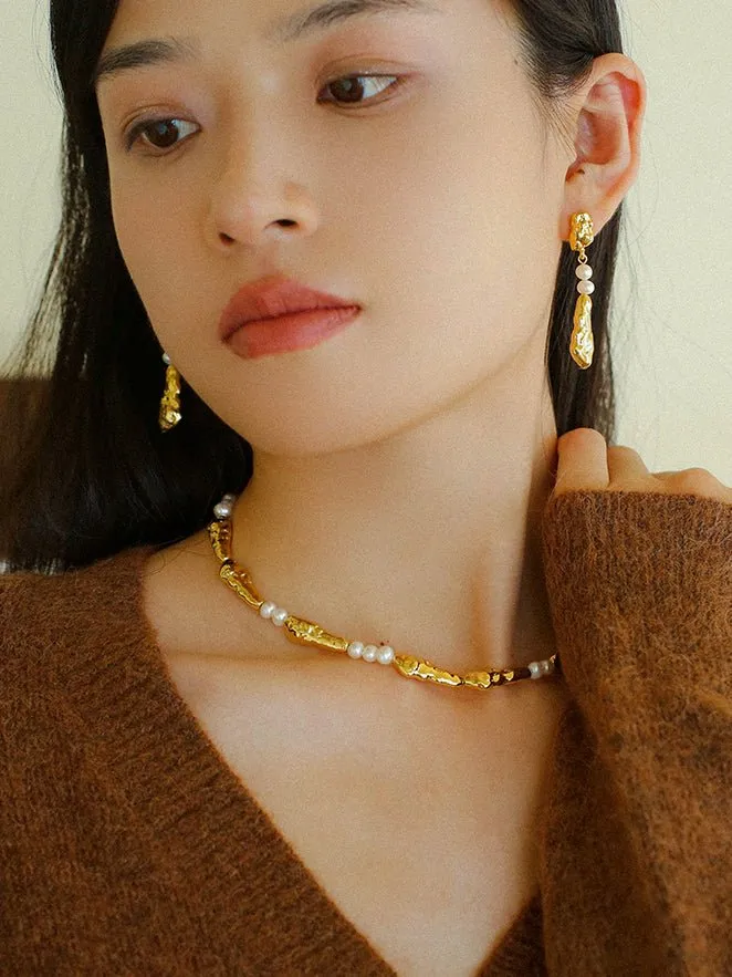 Elevate any outfit with our unique Geometric Irregular Metal Toothpicks Spliced Round Pearl Necklace. The combination of round pearls and edgy toothpicks creates a modern and eye-catching design that will make you stand out from the crowd.